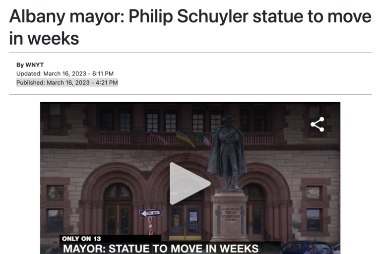 Albany mayor: Philip Schuyler statue to move in weeks From WNYT, News Channel 13 Published: March 16, 2023 – 4:21 PM The General Philip Schuyler statue will be removed from…