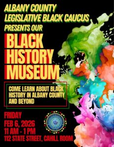 Join the Albany County Legislative Black Caucus and Community members to celebrate Black History month on Friday, February 6 from 11am-1pm in the Cahill Room at 112 State Street, Albany, NY.