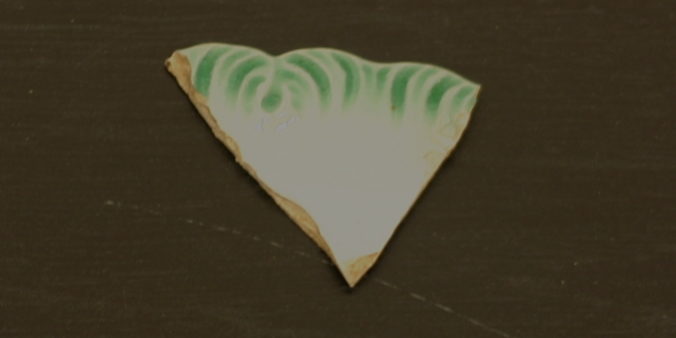 Fragment of plate rim pearlware/ earthenware with a green shell edge impressed bud design. Share this post Share on FacebookShare on Facebook Share on XShare on X